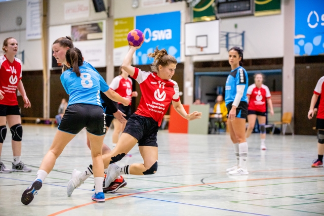 Am letzten großen Heimspieltag des Jahres trafen die Hochzoller Mädels auf den VSC Donauwörth. Die ersten 10 Minuten in der ersten Halbzeit sahen so aus, als würde dieses „Kellerduell“ in der Abwehr entschieden werden, zu diesem Zeitpunkt stand es 3:3. Danach netzten unsere Hochzoller Mädels konsequenter im Angriff ein und blieben in der Abwehr stabil. Nach 20 min stand es 11:5. Bis zum Ende der ersten Halbzeit schafften es die Hochzoller Mädels, die Führung noch um ein Tor auszubauen und man ging zufrieden mit 16:9 in die Halbzeit. Bis zur 45 min blieben die Hochzoller Mädels stark in der Abwehr stehen und könnten mit einer 23:15 Führung in die Schlussphase gehen. In der letzten Viertelstunde rotierte Trainer Dovids nochmal munter durch, weshalb vielleicht die Abwehr der Hochzoller Mädels etwas löchriger war als zuvor und auch im Angriff manchmal die letzte, entscheidende Konsequenz fehlte. Dennoch sicherten sich die Hochzoller Mädels den verdienten 27:23 Sieg.